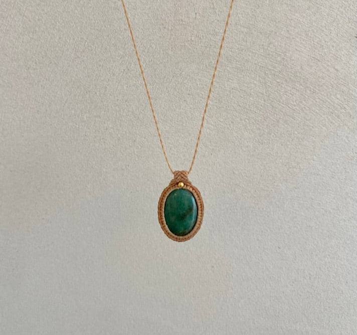 Collar tejido a mano en macramé con piedra semipreciosa Jaspe.